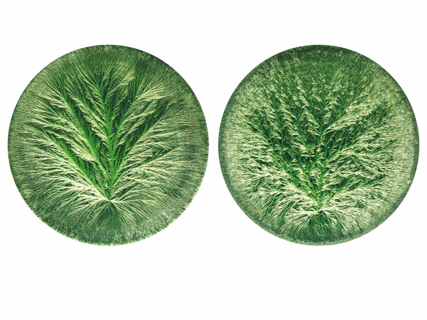 Ein subtileres Beispiel ist die Auswirkung der Behandlung von Mistelwirtsbäumen (Ulmen) mit biologisch-dynamischen Präparaten auf die Qualität des Mistelpräparats (siehe Abb. 2). Vergleicht man die beiden Kristallisationsmuster mit einer rein analytischen Wahrnehmung, so fallen die langen, etwas groben und unregelmäßig angeordneten Seitennadeln der wenig (nur einmal mit Hornmist) behandelten Variante am meisten auf. In den Ästen des Bildes für die häufig (mehrfach mit Hornmist und Hornkiesel) behandelte Variante zeigt sich bei einfühlsamer Betrachtung eine mehr fließende, vernetzte Bewegung. Man wird sich einer vom Kristallisationszentrum ausgehenden ‹Präsenz› bewusst, welche die Bildelemente koordiniert und zu einer zusammenhängenden Ganzheit führt.