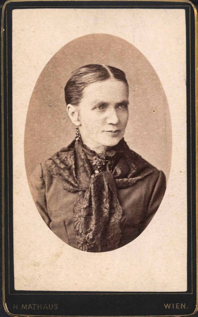 Über Franziska Steiner-Blie (Horn, 8.5.1834–24.12.1918, Horn) ist nur wenig bekannt. Sie arbeitete in ihrer Jugend als Näherin. Eine Zeit lang stand sie «im Dienste des Grafen Hoyos» – wie ihr späterer Mann, den sie dort kennenlernte. Da der Graf die Brautleute lange auf die «Bewilligung zur Eheschließung» warten ließ, «entschlossen sie sich, die Heimat zu verlassen, um sich eine neue Existenz zu suchen»31.