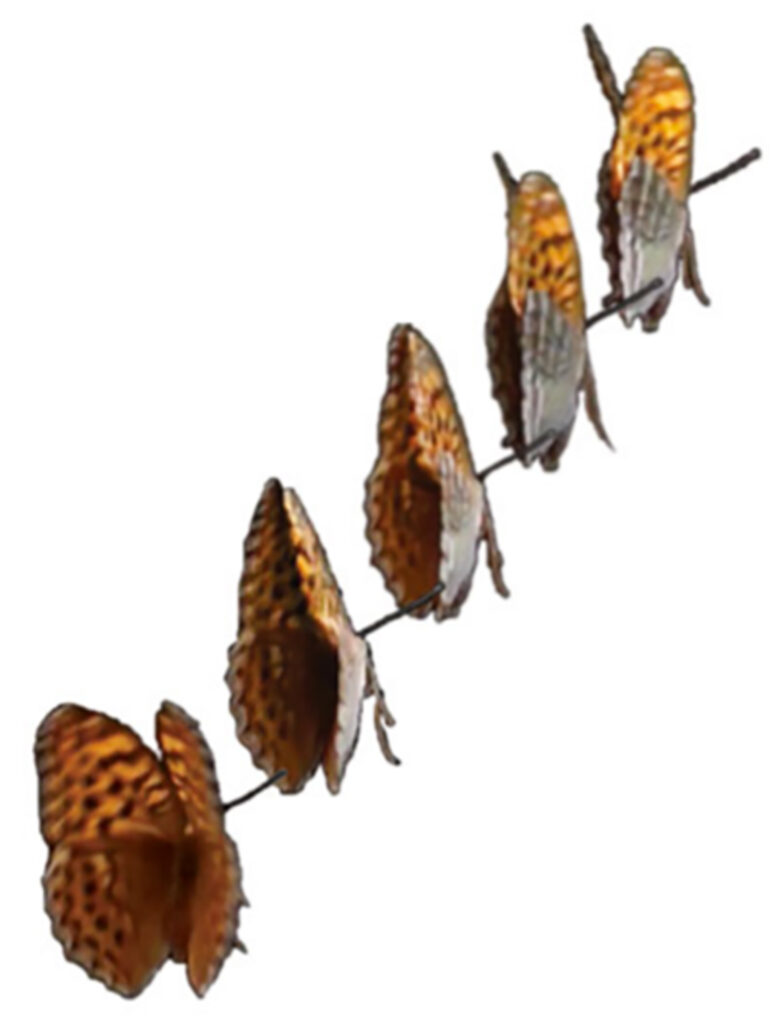 Schmetterlingsflügel sind keineswegs wie starre Bretter. Die sehr biegsamen Flügel bestimmter Seeschmetterlinge ähneln vielmehr der wirbelnden Anmut eines leichten Gewandes beim Tanz. Erst allmählich erkennen wir, wie dieser Tanz gleichzeitig dazu dient, den Flug zu verbessern, unter anderem mithilfe des sogenannten Drehimpulseffektes – der ‹Ballerina-Pirouette›.6