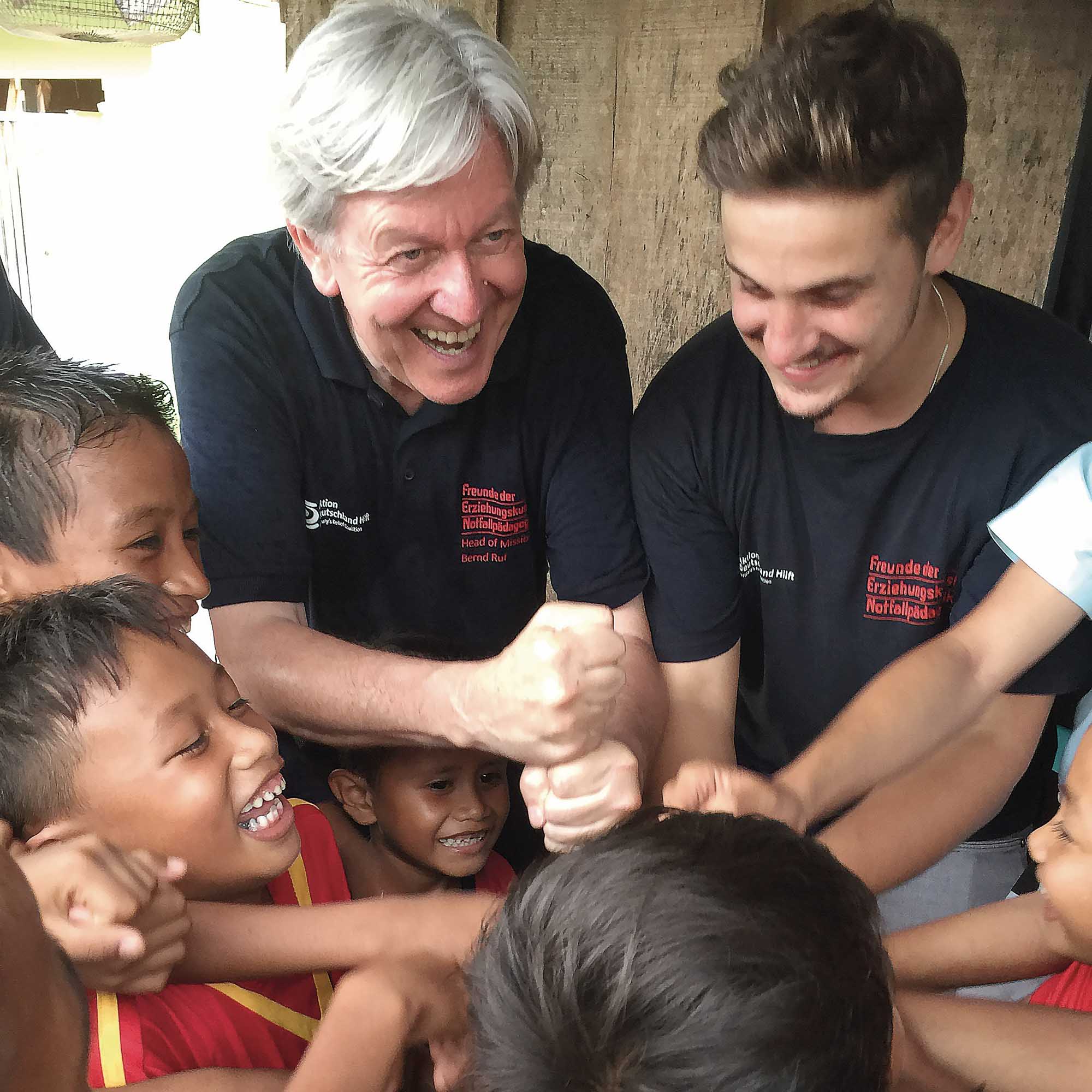 Tausende Menschen starben, 170 000 haben ihr Zuhause verloren. Nach dem Notfallpädagogik-Akuteinsatz und den Seminaren im Dezember gründeten wir das PFA-Team für pädagogische und psychologische Erste Hilfe. 23 Freiwillige arbeiteten seitdem in acht Dörfern notfallpädagogisch mit den Kindern. Die bisherigen Effekte sind sehr positiv: Die Kinder sind ruhiger und können nun allen Anweisungen folgen. Ihre Aufmerksamkeit ist geweckt. Dies zeigt sich darin, wie sie unsere Angebote annehmen. Zudem fällt es ihnen leichter, dem Schulunterricht zu folgen. Einige Lehrer erklären auch, dass die Kinder sich nach den PFA-Aktivitäten wieder besser konzentrieren können. Wir empfinden die Notfallpädagogik als sehr hilfreich für unsere Arbeit.