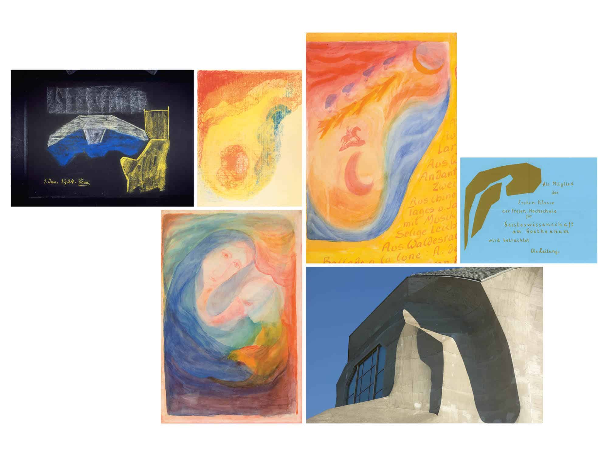Etwa zu gleicher Zeit begann er, mit den Mantren für die erste Klasse der Freien Hochschule für Geisteswissenschaft ‹Ausdrucksarten› zu entwickeln, «die der geistigen Welt selbst entlehnt sind».2 Wie verhalten sich diese beiden Ausdrucksarten oder Sprachformen des Geistigen zueinander? Diese Frage steht für den Autor noch unbeantwortet im Hintergrund der Beschäftigung mit den Bildern, von denen hier die Rede sein soll.