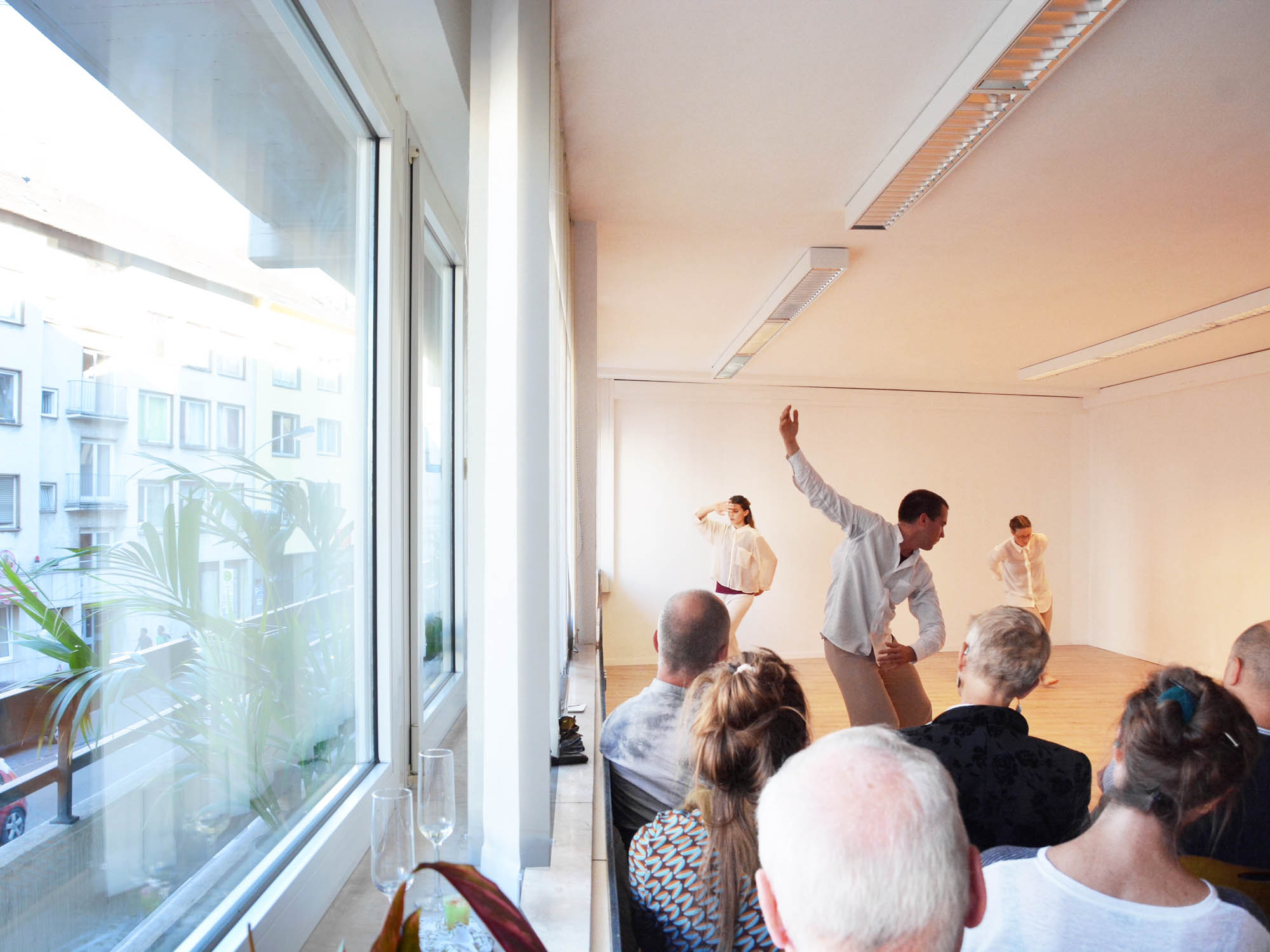 Der Gründungsgedanke des Vereins führte zu einer intensiven Forschungs- und Aufführungspraxis, aber auch zu einem initiativen Engagement. Das Ensemble ihoch3 war für einige Zeit das Herzstück der Vereinsarbeit und hat bei diversen Anlässen, zum Beispiel Tagungen, mit «situativen Kompositionen» gearbeitet. Isabelle Rennhack und Michaela Prader vom Vereinsvorstand engagieren sich aber auch organisatorisch. So haben sie bereits 2018 das Studio einsatzstelle25 für Tanzkunst und Bewegungskurse eröffnet, das in den leerstehenden Räumen des ehemaligen Bonner Polizeipräsidiums sein Zuhause fand und heute aktiv von Kunstschaffenden aus Eurythmie und Musik als Arbeits-, Veranstaltungs- und Inspirationsort genutzt wird. Auch die jährliche Teilnahme an der Bonner Theaternacht und an den Tagen der offenen Ateliers verknüpft den Ort mit seinem lokalen Publikum. Das neueste Projekt des Vereins ist das künstlerische Residenzprogramm, das für zwei Orte entwickelt wurde: in Bonn (einsatzstelle25) und in Amsterdam (Theater De Roode Bioscoop). Der Verein unterstützt Profis aus der Eurythmieszene dabei, in der Residenz ein eigenes Stück zu erarbeiten und dies sowohl künstlerisch und dokumentierend als auch unternehmerisch umzusetzen. Marthy Hecker und Tanja Rudenko vom Organisationsteam des Vereins stehen ihnen dabei zur Seite. In diesem Jahr haben schon vier Kunstschaffende von der Ausschreibung profitiert. Zukünftig wollen Isabelle Rennhack und Michaela Prader noch mehr Kunst vermitteln und dafür Begegnungsfelder zwischen Kunst und Unternehmen bauen. Wer sich dafür interessiert, kann einen direkten Kontakt aufnehmen