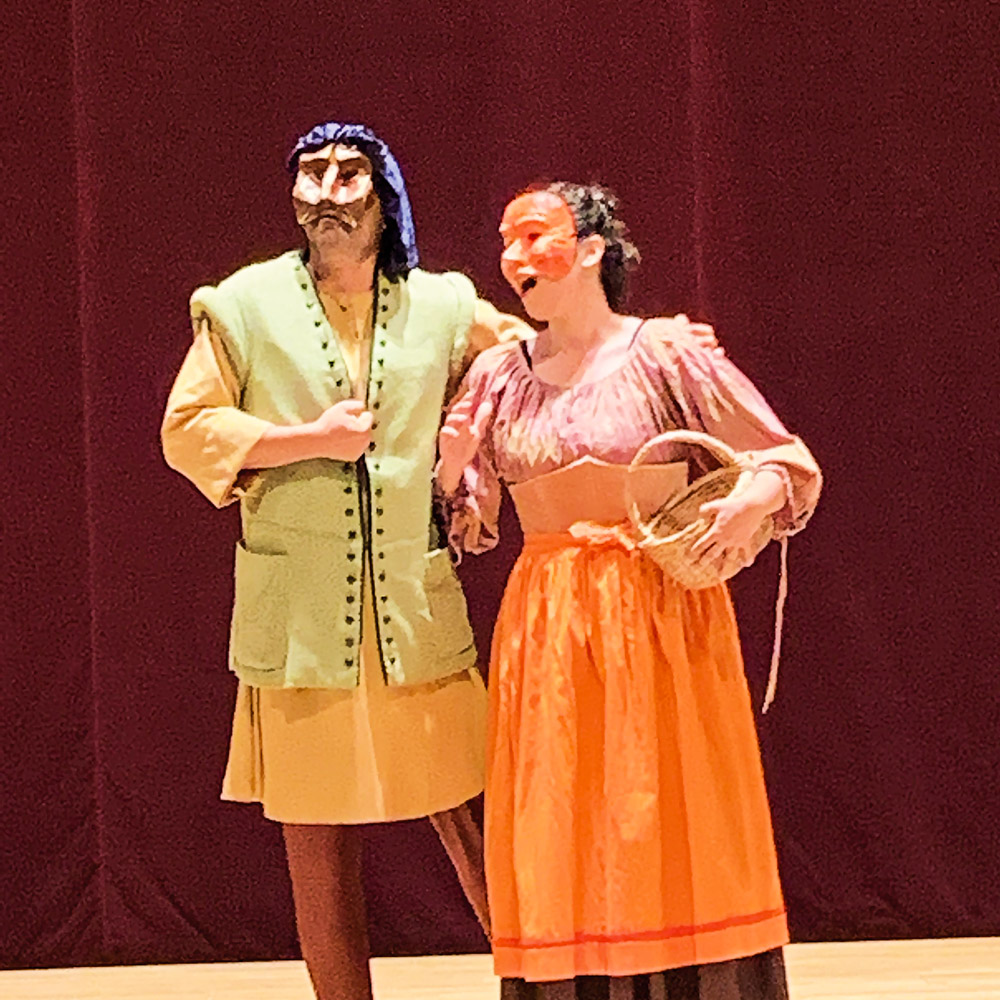 Foto: Silke Kollewijn, Szene mit Masken aus einem mittelalterlichen Stück von Rosante.