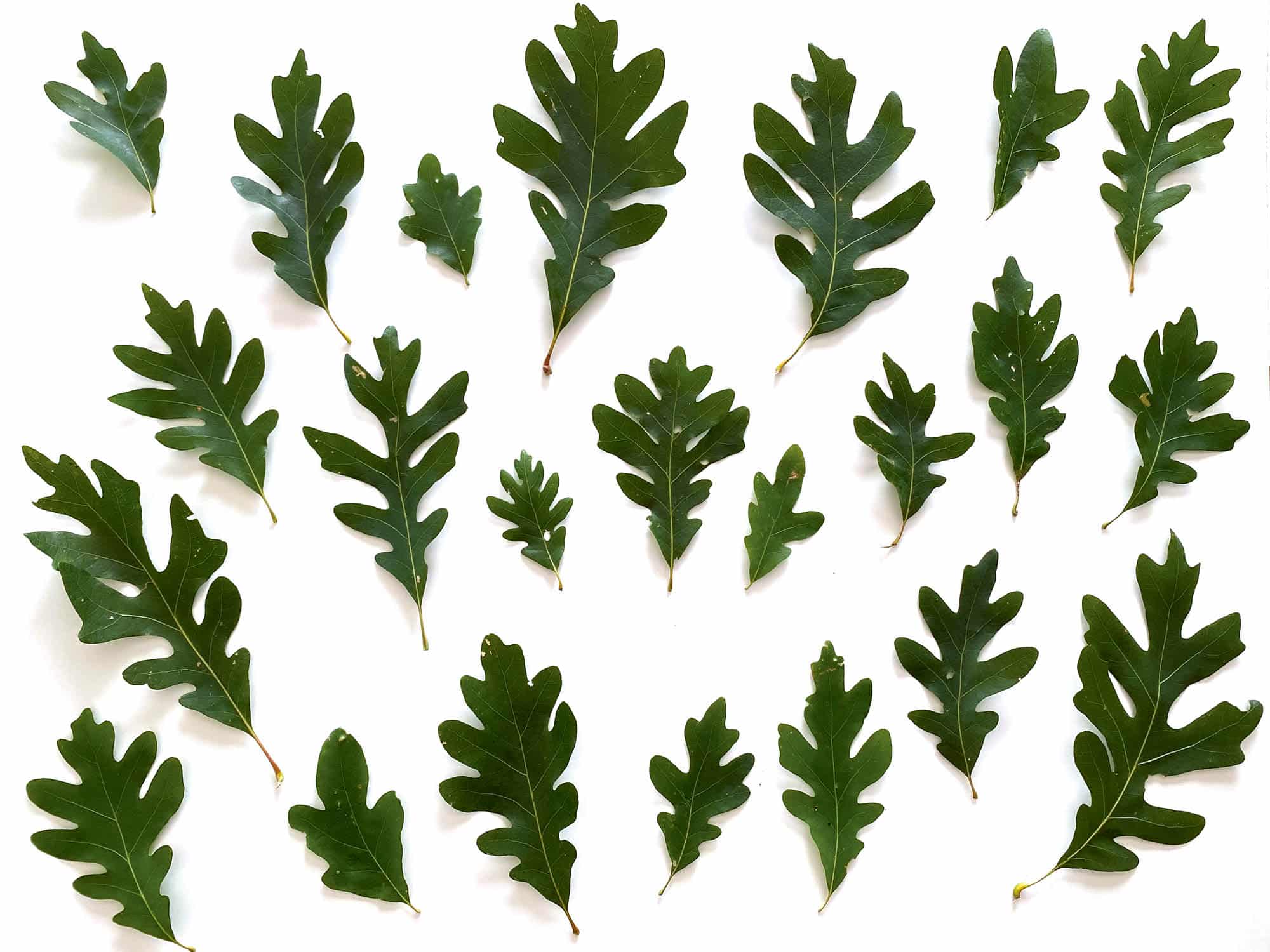 Im Bestimmungsbuch steht: Weiß-Eichenblätter haben sieben bis neun rundliche Lappen und Buchtungen, die 1/3 bis 7/8 der Länge bis zur Mittelrippe ausmachen; eine keilförmige Basis; einen kurzen, kräftigen Blattstiel; eine glatte Oberfläche; eine graugrüne bis hellgrüne Farbe. Wird das dem Blatt, das wir vor uns haben, gerecht? Kaum. Wenn wir nun den Baum als Ganzes bedenken, wie er jedes Jahr seine Blätter verliert, neue Knospen und dann Tausende von neuen Blättern bildet, jedes ein wenig anders und doch ein Blatt der Weiß-Eiche, dann zeigt sich, was für ein kreatives Geschöpf diese Eiche ist, die sich in so vielen verschiedenen Blättern anders darstellt. Und doch drückt sich in jedem Blatt etwas aus, das seine Identität ausmacht.