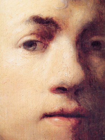 In der Osterzeit stehen Jupiter und Saturn am Morgenhimmel. Der Gegensatz in ihrem Ausdruck spiegelt sich in dem Stirb und Werde des Tierkreishintergrunds.