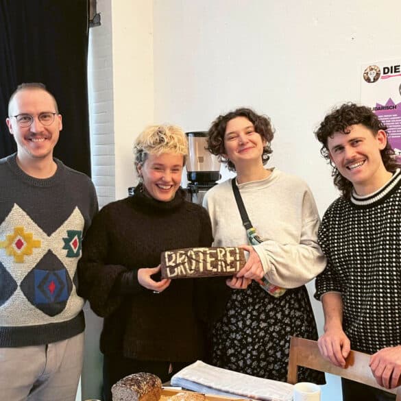 Bonn, Deutschland. Die Broterei Bonn ist das Bäckerei-Äquivalent zur Solidarischen Landwirtschaft (SoLaWi). Felix, Lia, Sarah und Marvin, eine Gruppe junger...