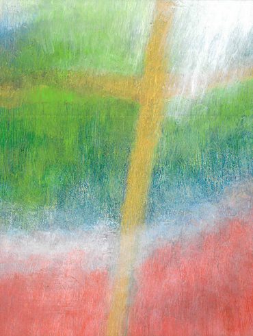 Jeans, Turnschuhe, weißes Haar und ein federnder Schritt. So steht Ronald Templeton am Projektor und führt die Runde der Mitarbeitenden am Goetheanum durch die einzelnen Motive des großen Roten Fensters.