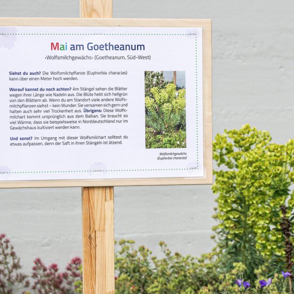 Unter dem Stichwort ‹Mai im Goetheanum› informiert die Gärtnerei seit einigen Wochen auf Schildern Spaziergängerinnen und -gänger über die Artenvielfalt im Gartenpark des Goetheanum.