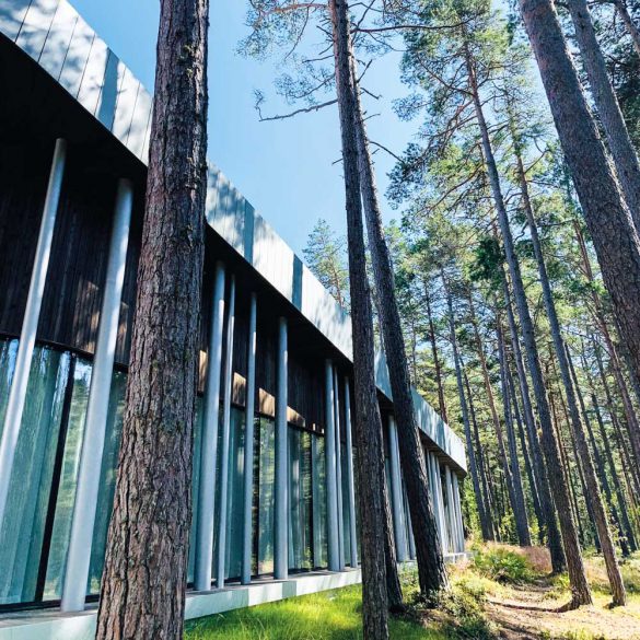 Mitten im estnischen Wald an der Küste zum Baltischen Meer stößt der Reisende auf einen Bau, der wirkt, als wäre er aus den umgebenden Kiefern entstanden. Es ist das Arvo-Pärt-Zentrum.
