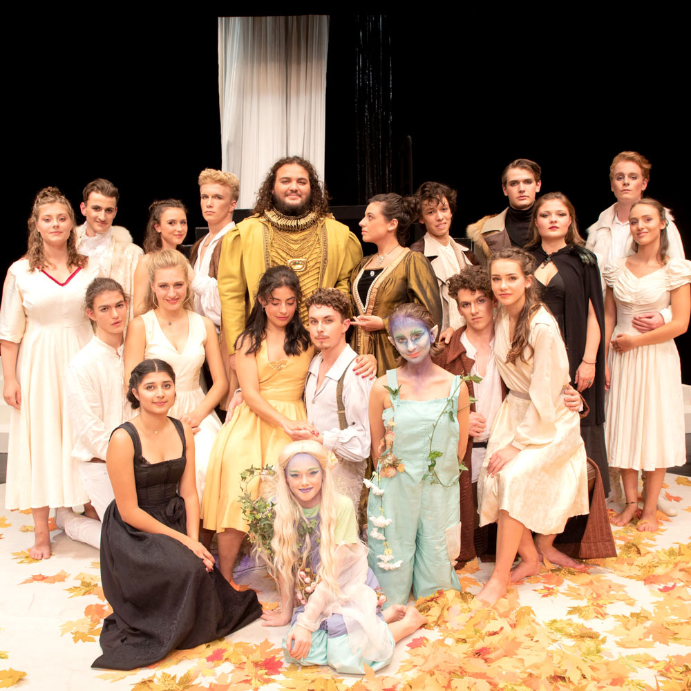 Im Theater stößt die Welt des Scheins auf die des Sinns; es lehrt, dass man sich von der Illusion nicht ablenken lassen soll, will man das Leben in seinen Urgründen verstehen. ‹Shakespeare’s Night› kommt locker daher: Puck setzt sich nicht nur in seinen Türkistönen von den anderen ab; er ist gleich der Unruhe einer Uhr der Spielmacher, jedoch ohne alles im Griff zu haben. Denn zu tun haben er und sein bodenständiges Gegenbild, das zugleich seine Seelenschwester ist, die Amme, mit Persönlichkeiten, die ihr Eigenleben führen. Zu Beginn eurythmisieren ausdrucksstark die Hexen und spricht ein Sprechchor zum Auftritt von Macbeth mit seiner Lady, die morden, weil sie es nicht anders können. Andere ziehen unentwegt übereinander her (Benedikt und Beatrice). Und der König verzeiht, egal was passiert, auch wenn er gerade ermordet werden sollte (hätte nicht ein Tier statt ihm im Bett gelegen). Gestorben, mahnt die Königin, werde auf der Bühne, aber nicht hier, hier werde gefeiert – man könnte auch sagen: gelebt. Nicht hier? Auf der Bühne liegt ein runder Teppich. Oder doch eher eine Spielwiese des Spiels mit dem Spiel.