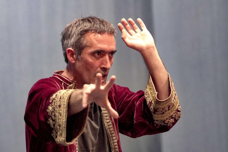 Urs von Glenck (vorne) spielt im ‹Faust II› den Kaiser – eine Figur, die dem Teufel misstraut, aber die Umstände treiben sie in dessen Fänge. Mit teuflischer Hilfe wird ein Krieg gewonnen, bezahlt mit dem Pfand auf das Land. Daraus schlägt der Erzbischof (Torsten Blanke im Hintergrund) Kapital. Wieder wird ein Pakt...