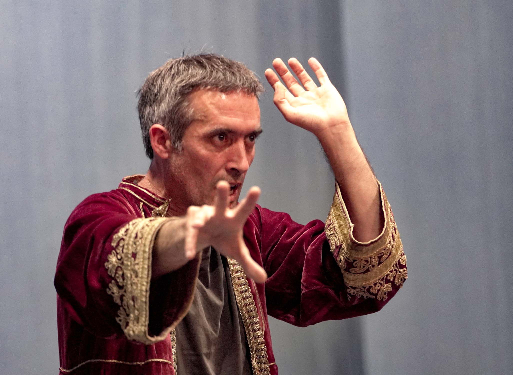 Thomas Daviaud spielt die Hexe in ‹Faust I›. Im Hexeneinmaleins braut er den Trank, der Faust verjüngen soll. In der ersten Probe ging es um eine Zeile, in der die Hexe den Ton wechselt, denn plötzlich spricht sie eine Warnung aus: «Doch wenn es dieser Mann unvorbereitet trinkt, / So kann er, wisst Ihr wohl, nicht eine Stunde leben.» So wechselt Ekstase, wenn Mephisto zur Peitsche greift, zur Konzentration, wenn die Hexe das Hexeneinmaleins beschwört. Für den französischen Spieler Daviaud eine seiner Glanzrollen in der Inszenierung.