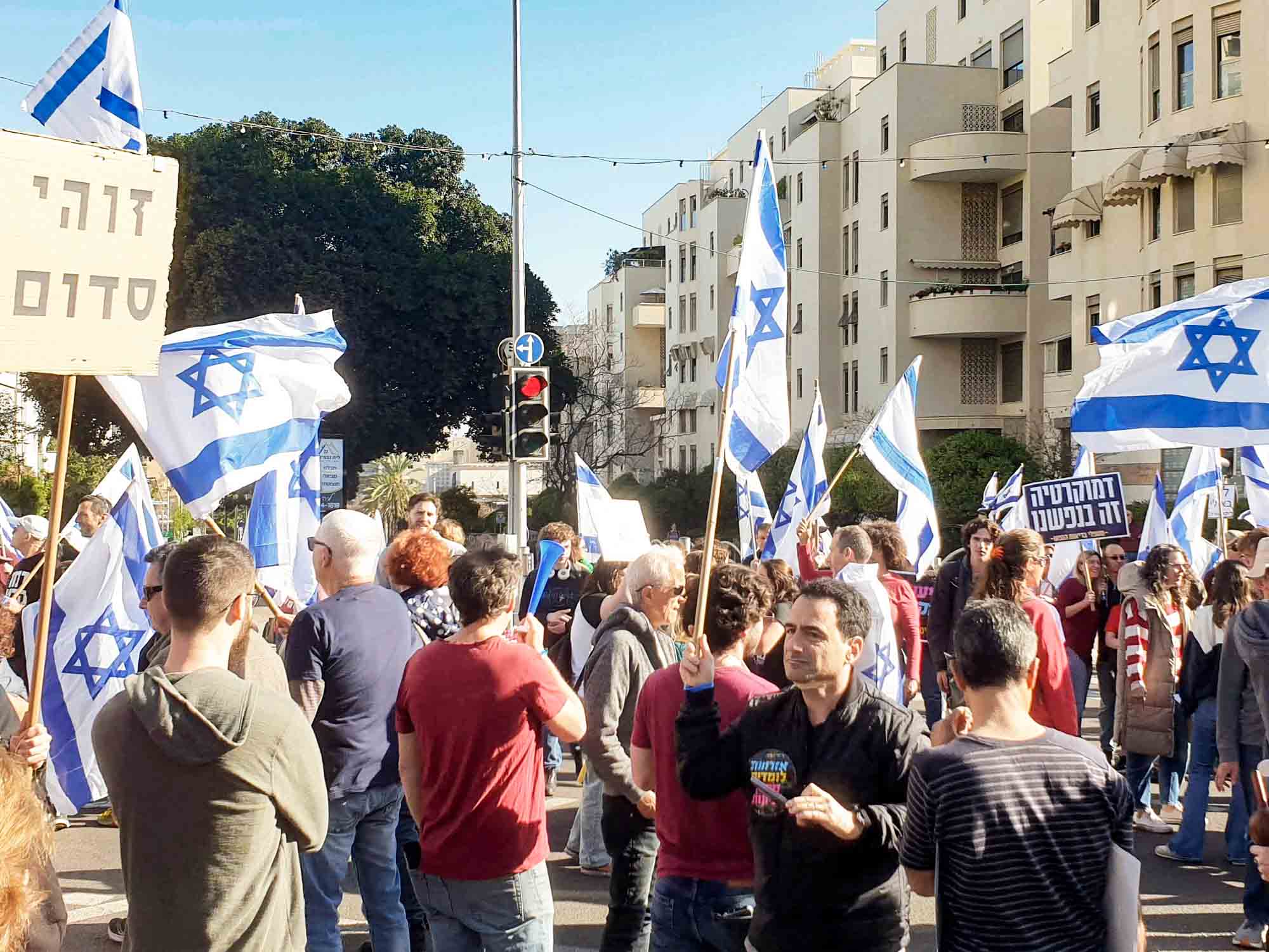 Titelbild Proteste in Kfar Saba, Israel, März 2023. Foto: Omer Toledano, CC 4.0