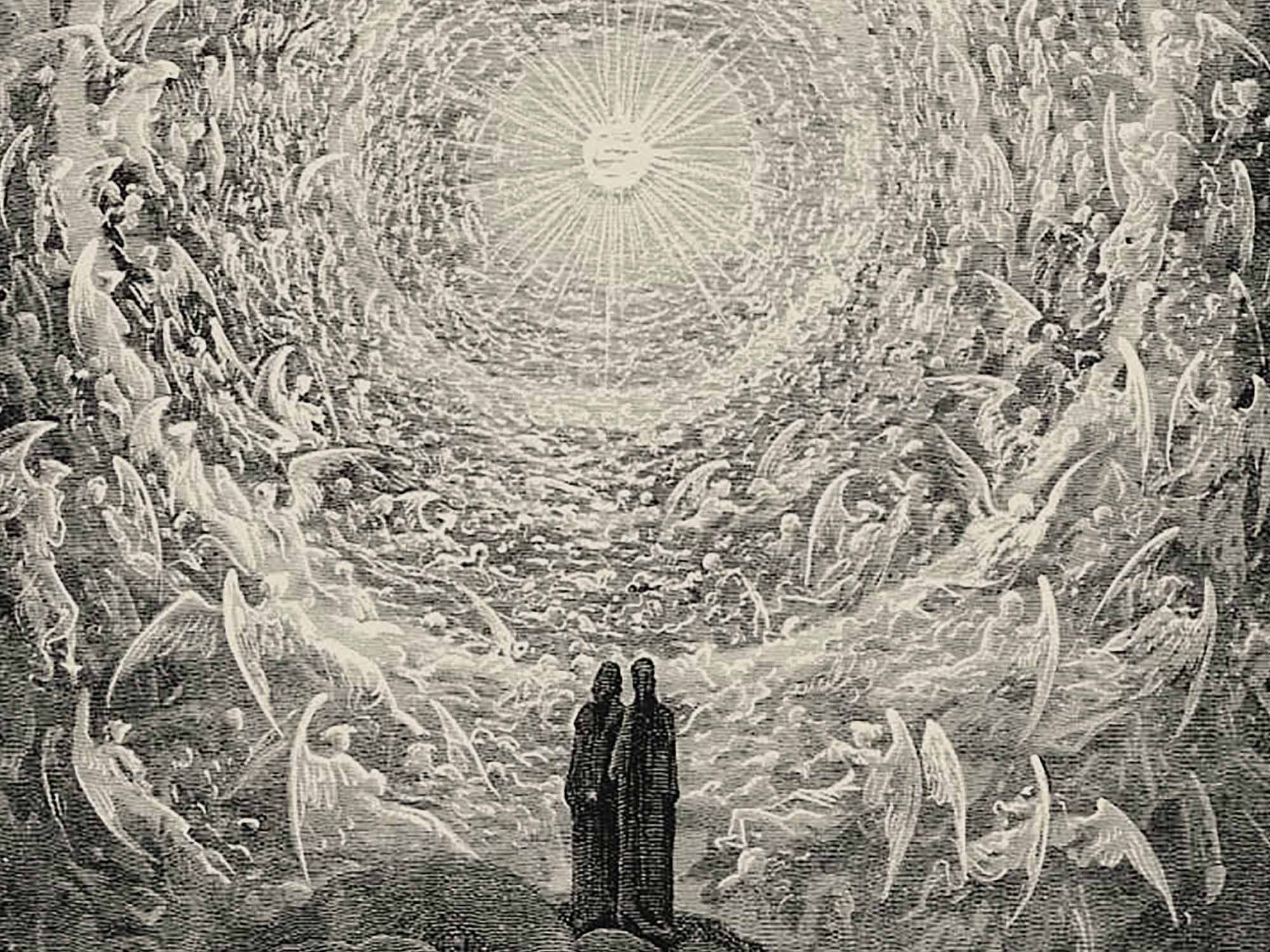 Bilder v. l. Gustave Doré, Illustration zu ‹Göttliche Komödie›, Biblioteca Classica Illustrata. Paradiso, Canto XXXI., Beatrice, Inferno, Canto II.