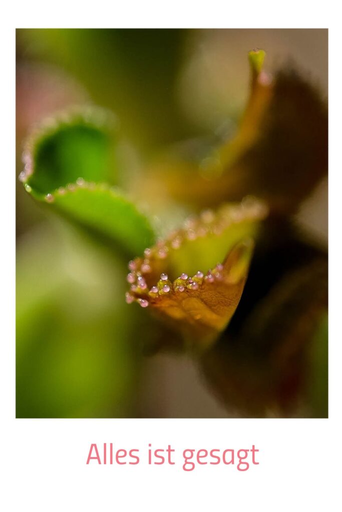 Als Fotografin ist es meine Aufgabe, ‹dazwischen› zu sein. Jedes Bild entsteht aus einer einzigartigen Konfiguration, die uns drei – das Blatt, das Licht und mich selbst – ins Gespräch bringt. Durch meiner Kamera frage ich: Blatt und Licht, wer formt wen? Ich bin losgezogen, um den Oster-Willen in der Natur zu entdecken. Ich fand ihn in jeder liebevollen Spur, erzeugt durch das Licht, das die Substanz formt, die das Licht formt.