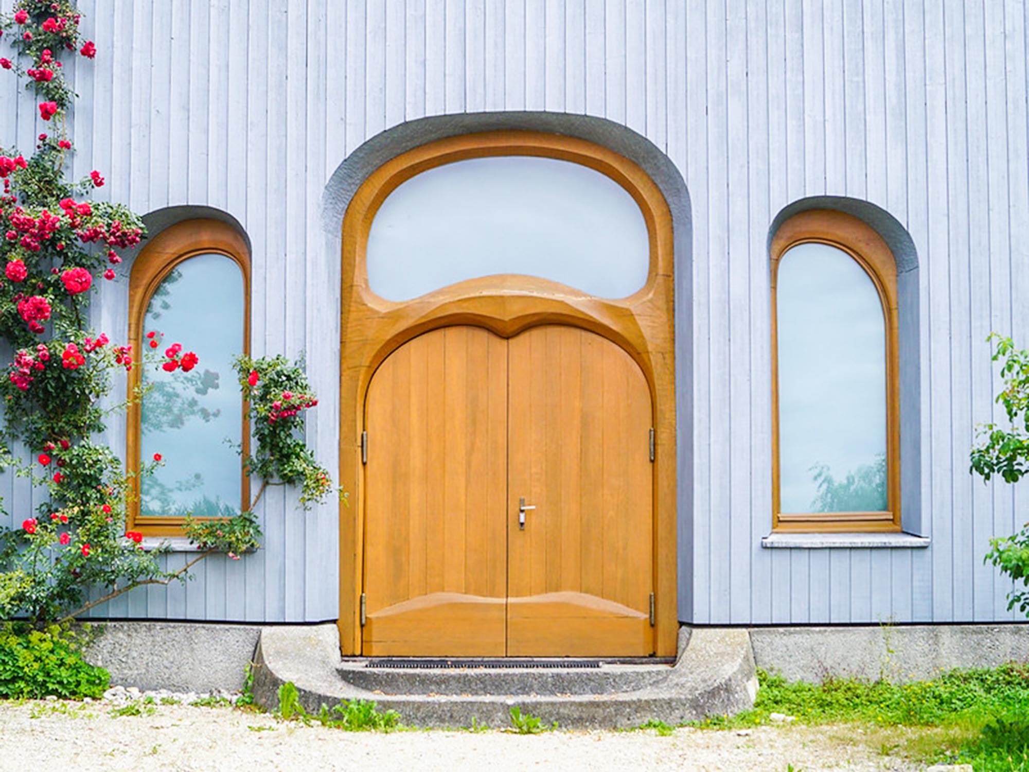 ‹Hidden Places›, also ‹verborgene Orte› nennen es die Redakteurinnen Sofia Lismont und Elena Borer. Sie kehren auf Facebook und Instagram einzelne Orte und Stellen hervor, eine physische Spurensuche für das digitale Leben. In einem solchen ‹post› präsentierten sie die Tür zum Hochatelier, eines der wenigen Überbleibsel des Ersten Goetheanum. Das Erste Goetheanum wurde zwischen 1913 und 1920 gemeinsam mit zahlreichen Menschen aus aller Welt gebaut. In der Silversternacht von 1922/23 verbrannte es. Die Tür wurde aus dem Betonsockel des Ersten Goetheanum gerettet. Hinter der Tür dieses blauen Hauses verbirgt sich das Hochatelier. Hier arbeiteten Rudolf Steiner und die Bildhauerin Edith Maryon zwischen 1914 und 1925 an einem Modell des ‹Menschheitsrepräsentanten›. Diese Holzskulptur gehörte zur Gestaltung der Bühne des Ersten Goetheanum. Ein Teil des Entwurfes ist hier immer noch zu sehen. Die Endfassung der Skulpturengruppe aus Holz ist im Goetheanum-Ausstellungsraum zu sehen.